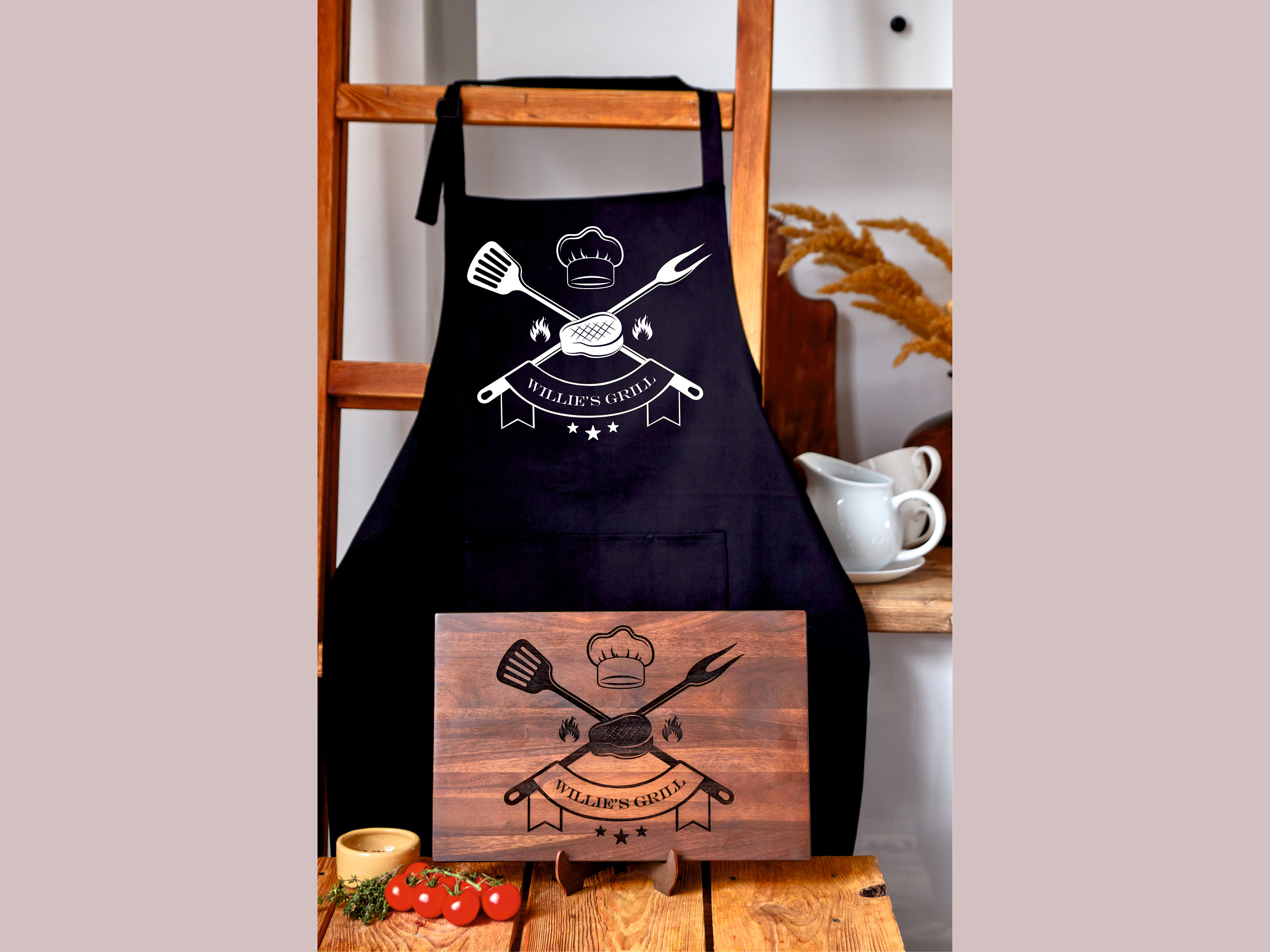 Personalized BBQ Set, Cutting Board and Apron Set, Custom Grill Set...