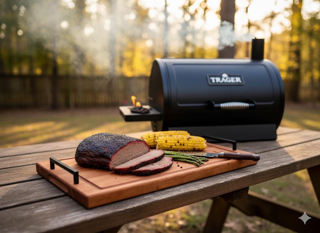 "This BBQ serving tray cutting board is the perfect way to transport meat from the barbeque to ...