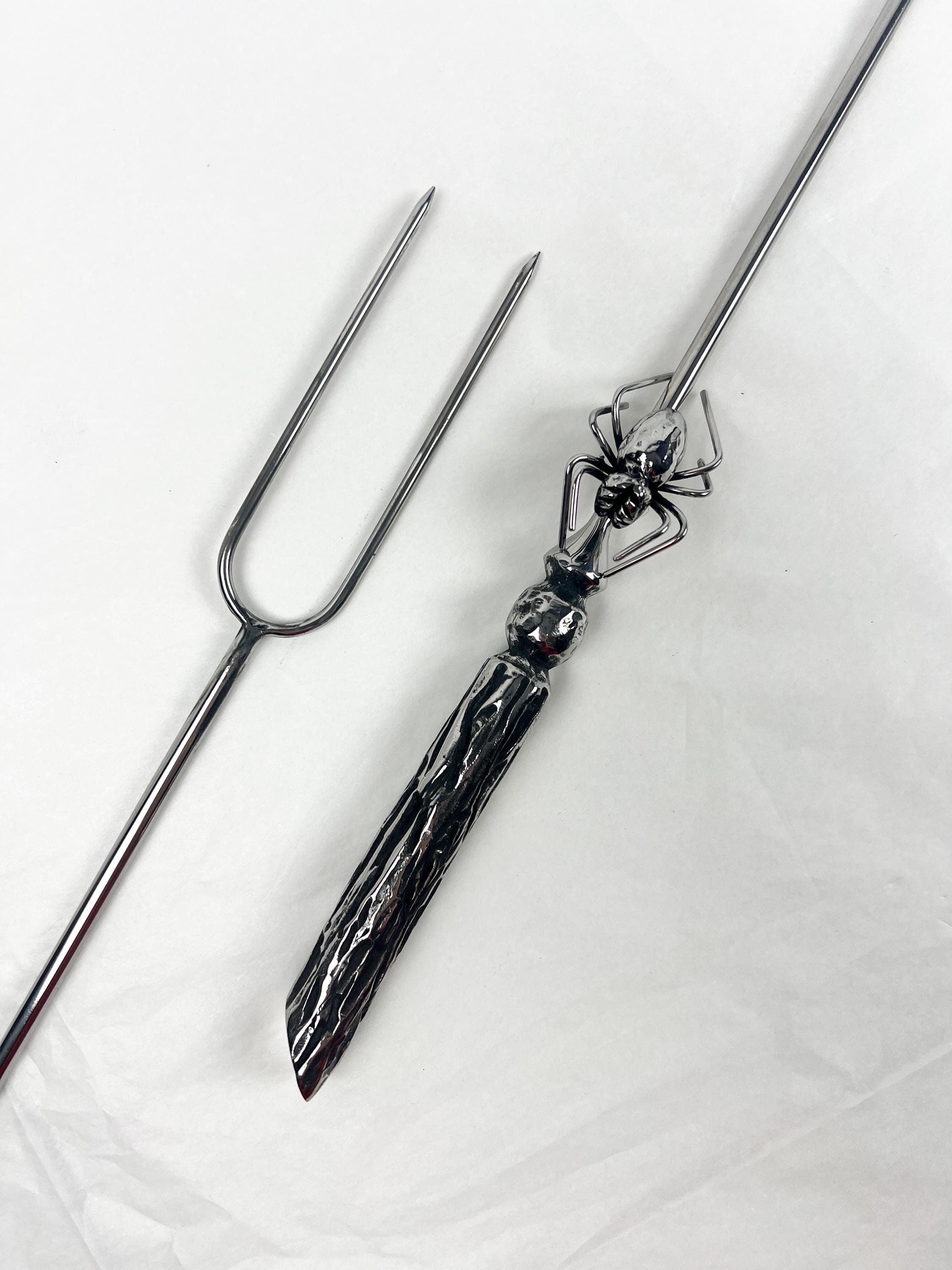 "--- Forged Sausage fork set \"Spider\" - 2 pc - Long Marshmallow Toasting Fork, stai...