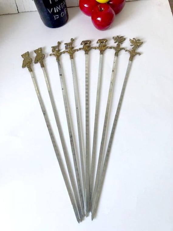 Large Barbecue, Brochettes - Kebab - Skewers, Vintage, 8, Brass and...