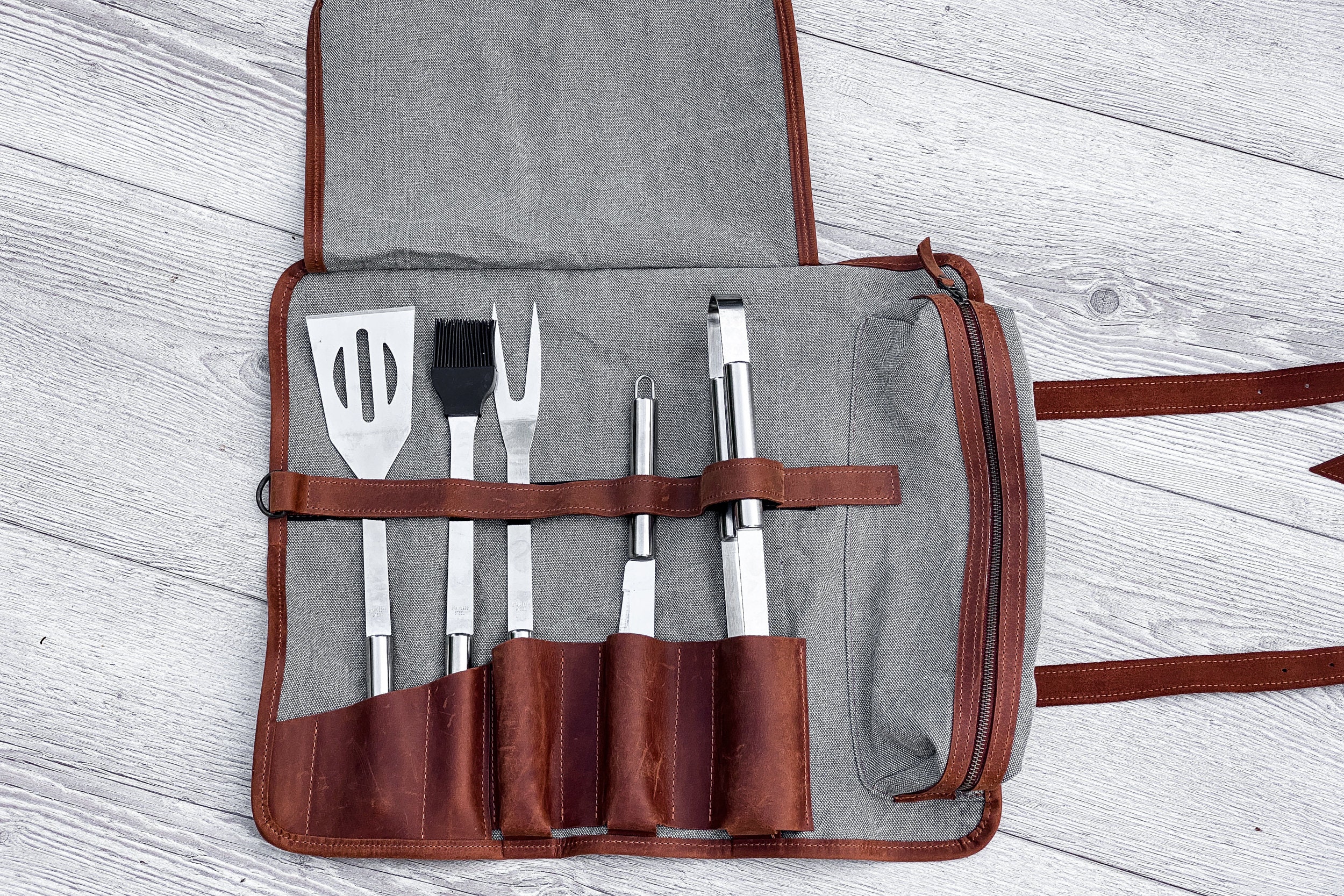 Leather BBQ tool roll, Grill utensil wrap, Gift for grill master, G...
