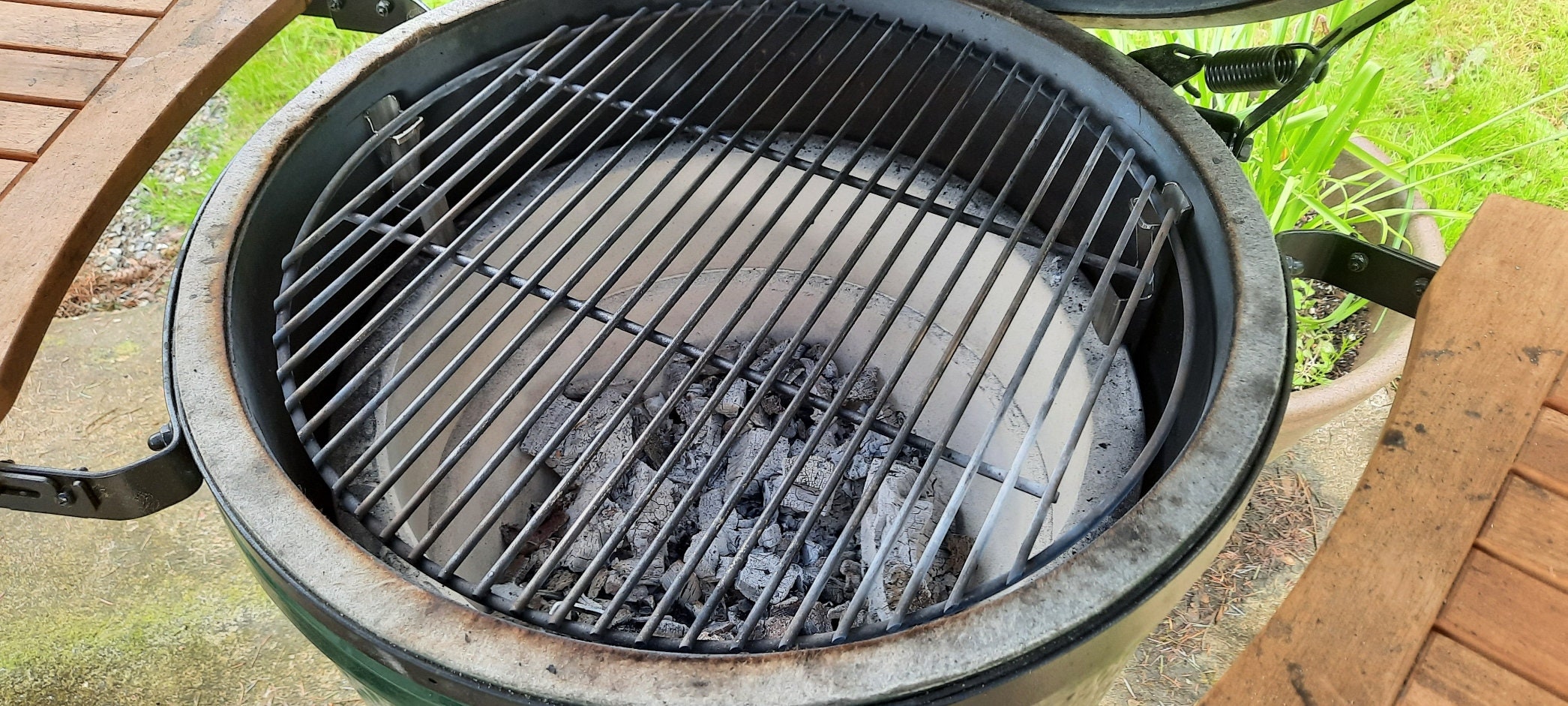 "The new 4-piece riser sets for positioning the grate at the rim of your Large Big Green Egg wh...