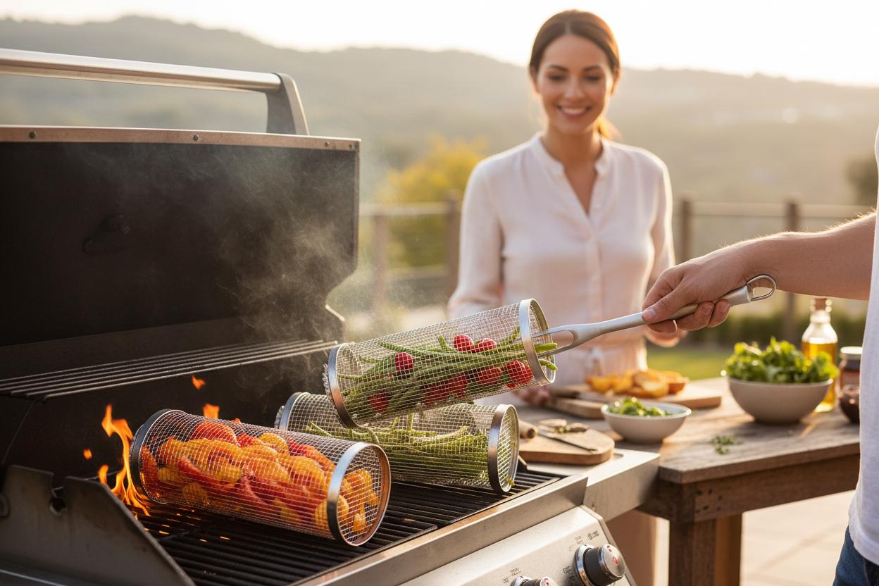 Upgrade your outdoor cooking experience with this Rolling Grilling BBQ Basket, designed to make gril...