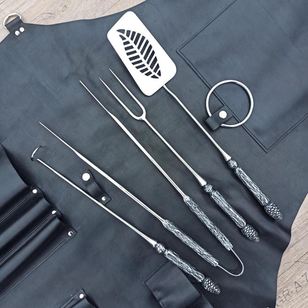 "- Forged grilling tools set \"Pine cone\" - 4 pcs Handmade Grill Accessories: fork, ...