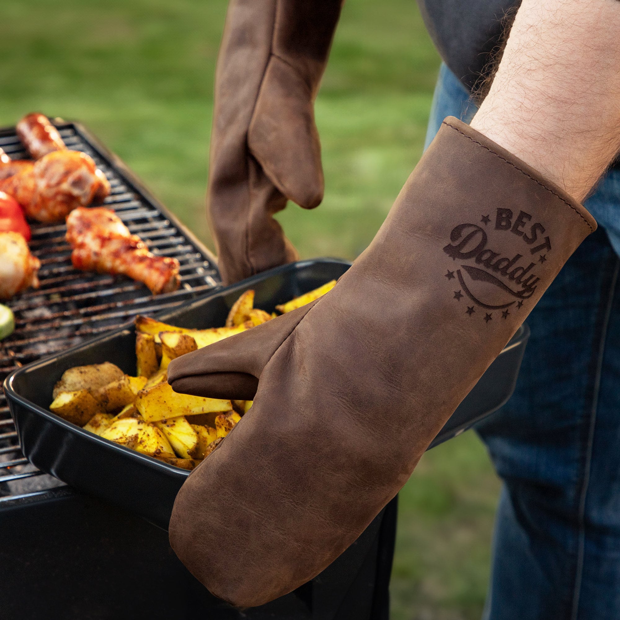 Personalized Smoker Grill Gloves | Grill Gift for Dad | Engraved Le...