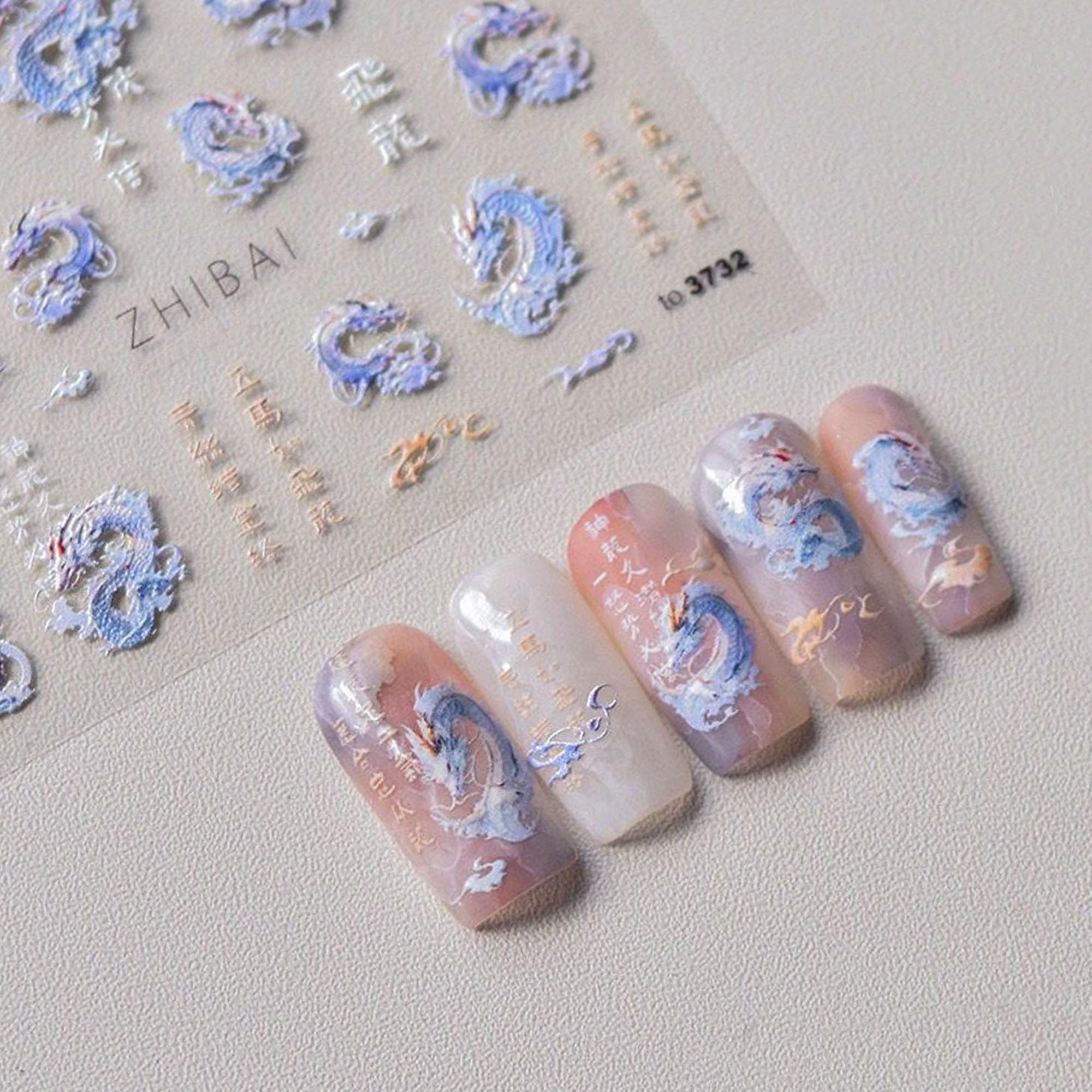 3D Dragon Nail Stickers, Blue Dragon Stickers, Red Dragon Nail Decals, Self Adhesive Nail Art Design...