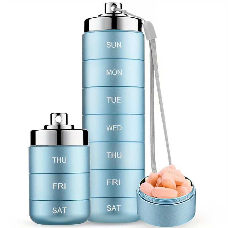 Metal Travel Pill Organizer, Portable Waterproof Weekly Pill Box, L...