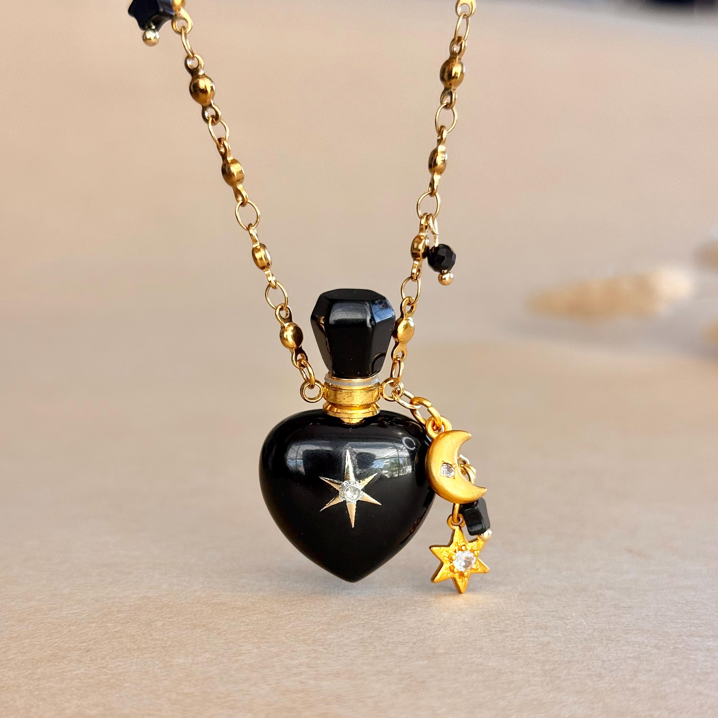 Black Obsidian Perfume Vial Necklace Wearable Fragrance Bottle Cele...