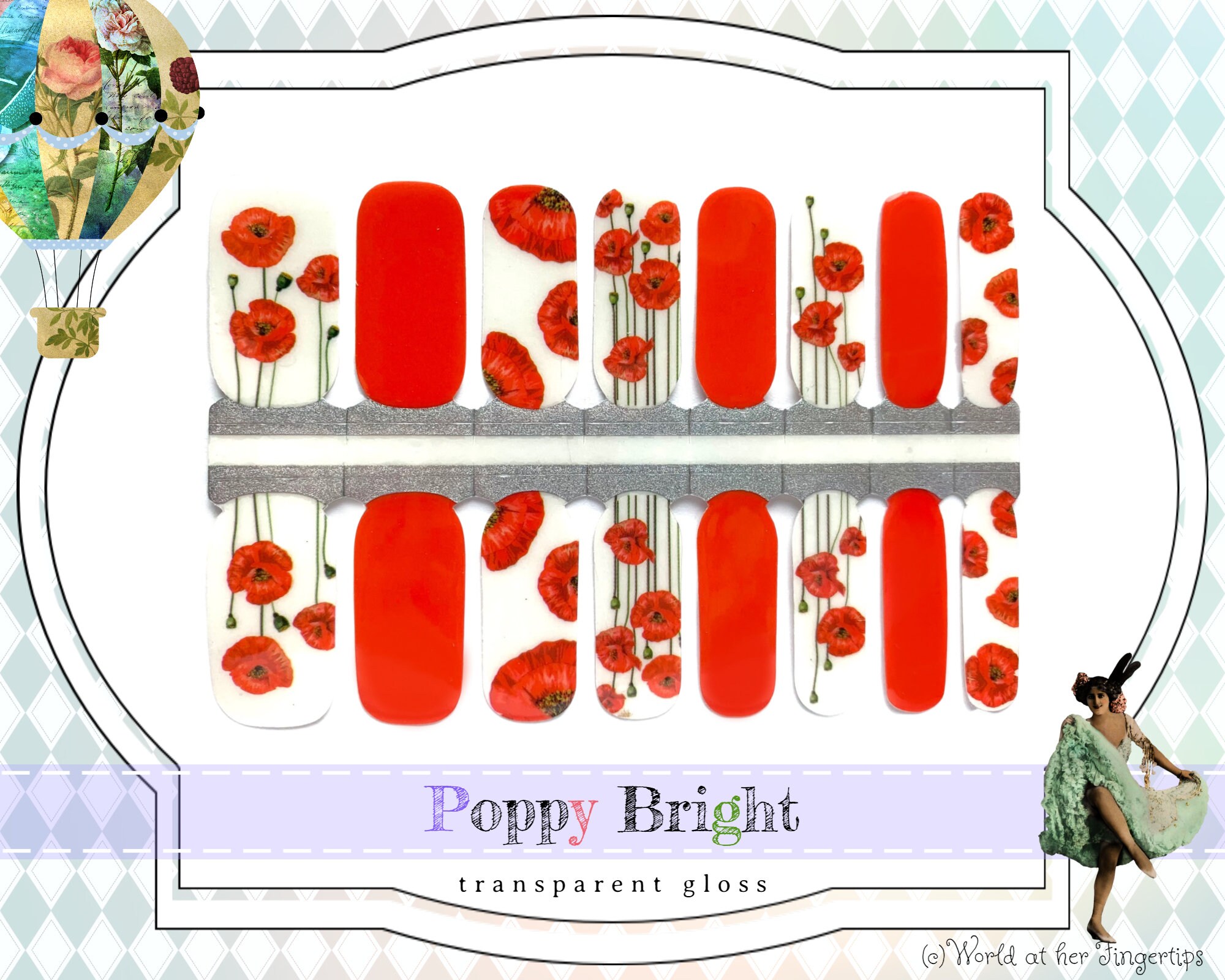 Poppy Bright Nail Wraps - Clear and Bright Red Flower Gloss Nail Po...