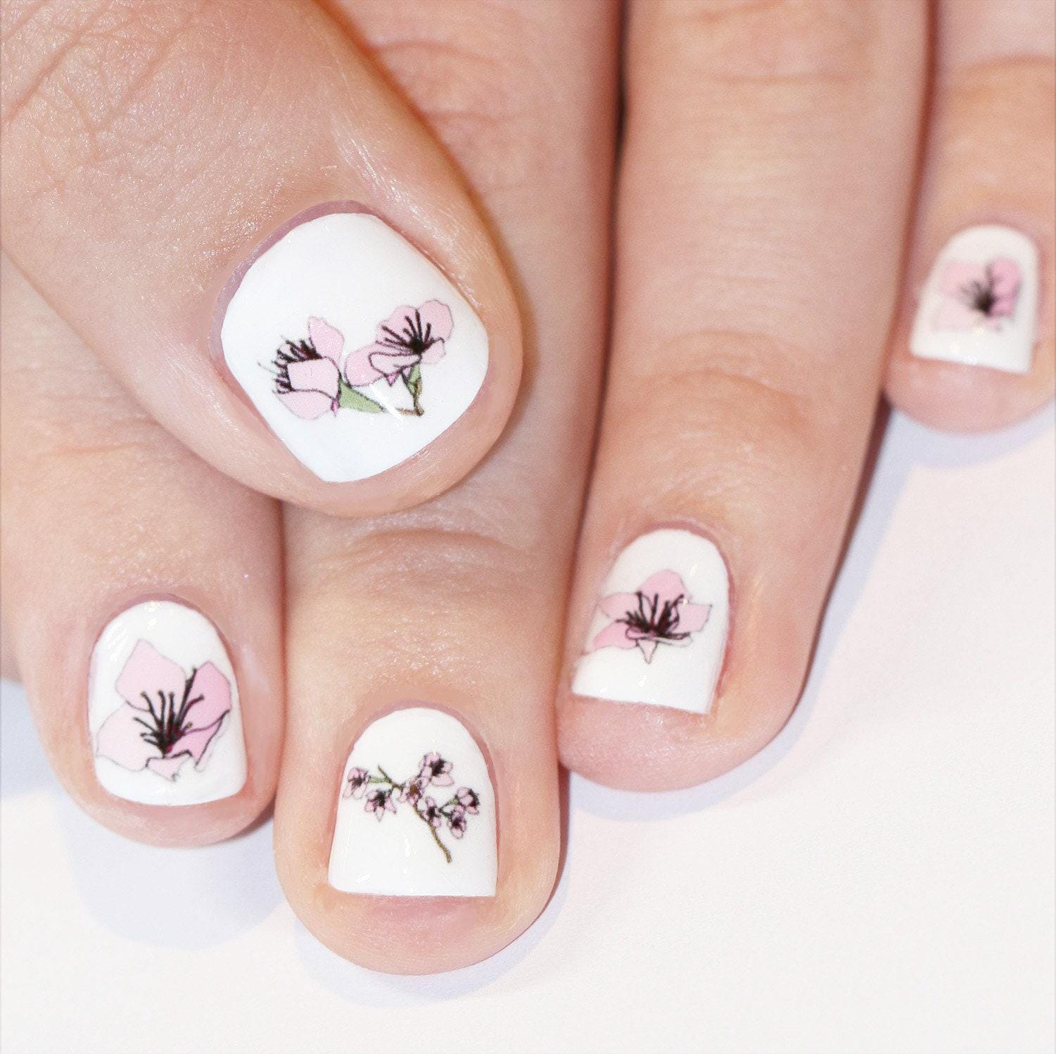 Cherry blossom nail transfers - illustrated sakura flower nail art ...