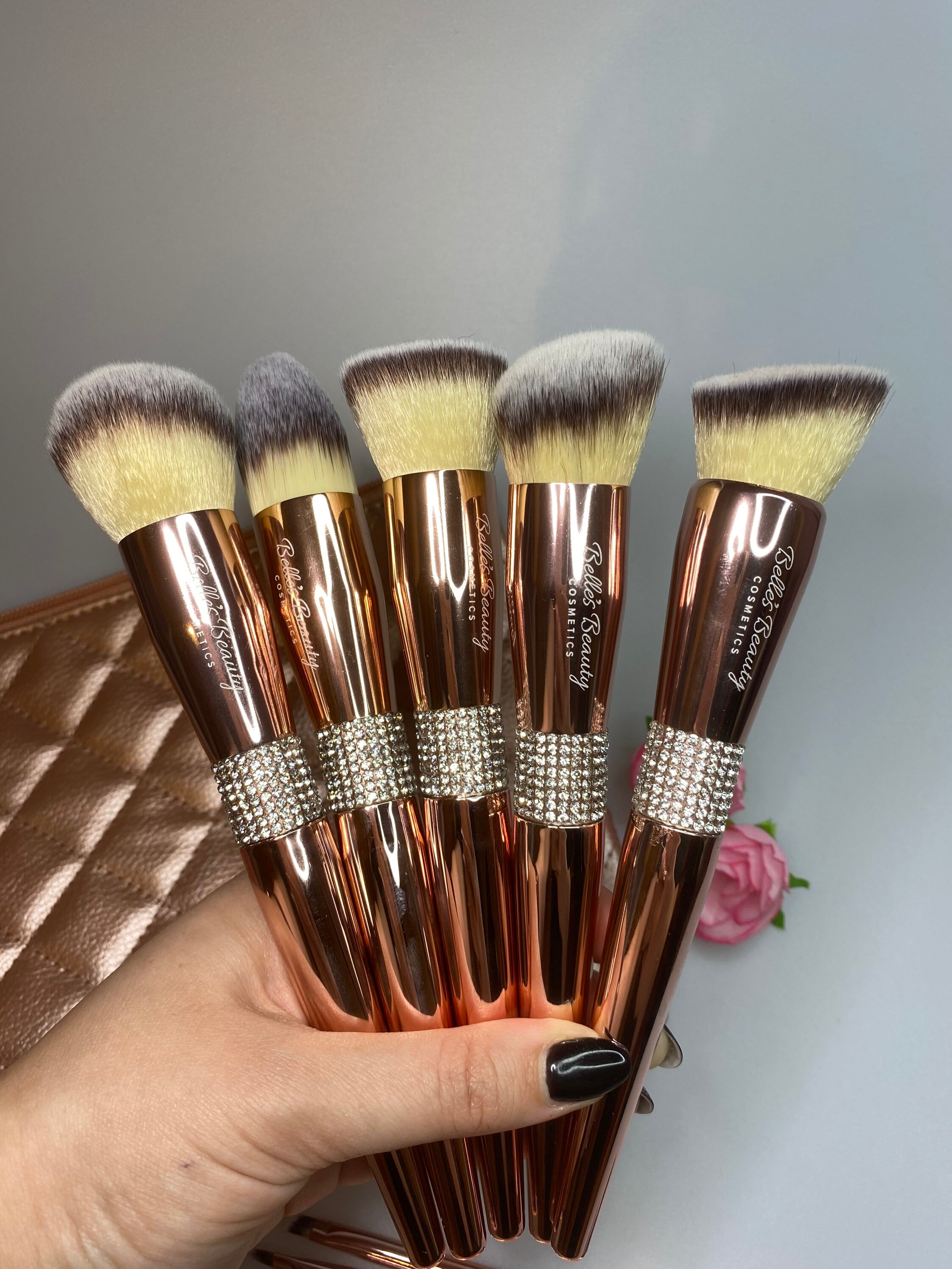 14 Piece pearl Rose Gold Make-Up Brush Set with Rose Gold Bag