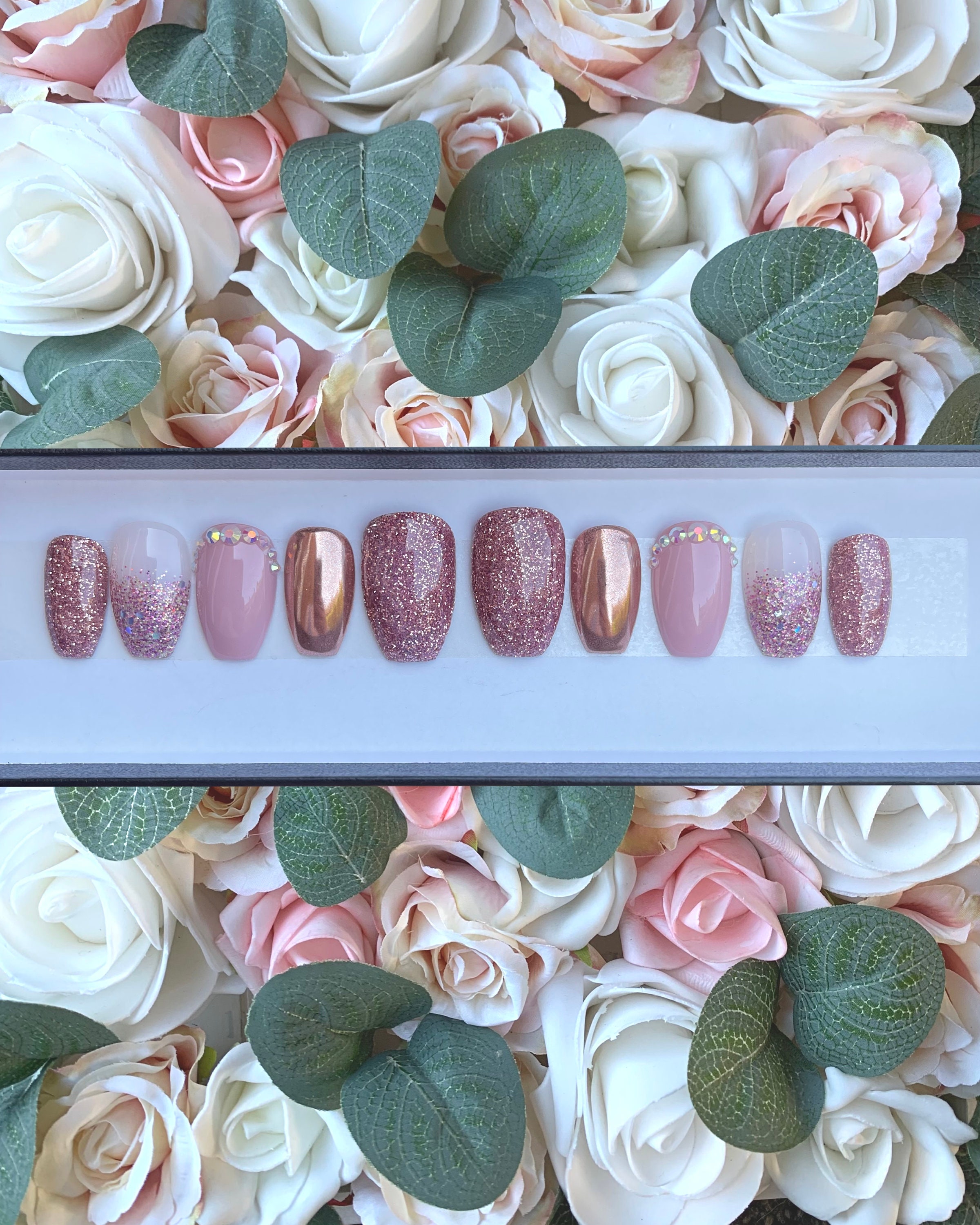 Press on Nails Rose Gold Chrome and Rose Gold Glitter | Stick on Na...