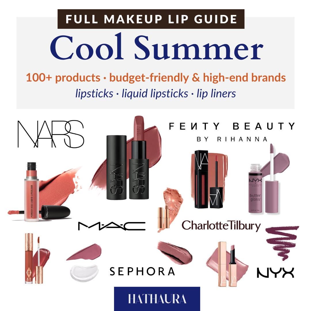 Cool Summer Lip Color Guide - 100+ Curated Shades for Soft Cool Skin Tones | Digital PDF Designed fo...