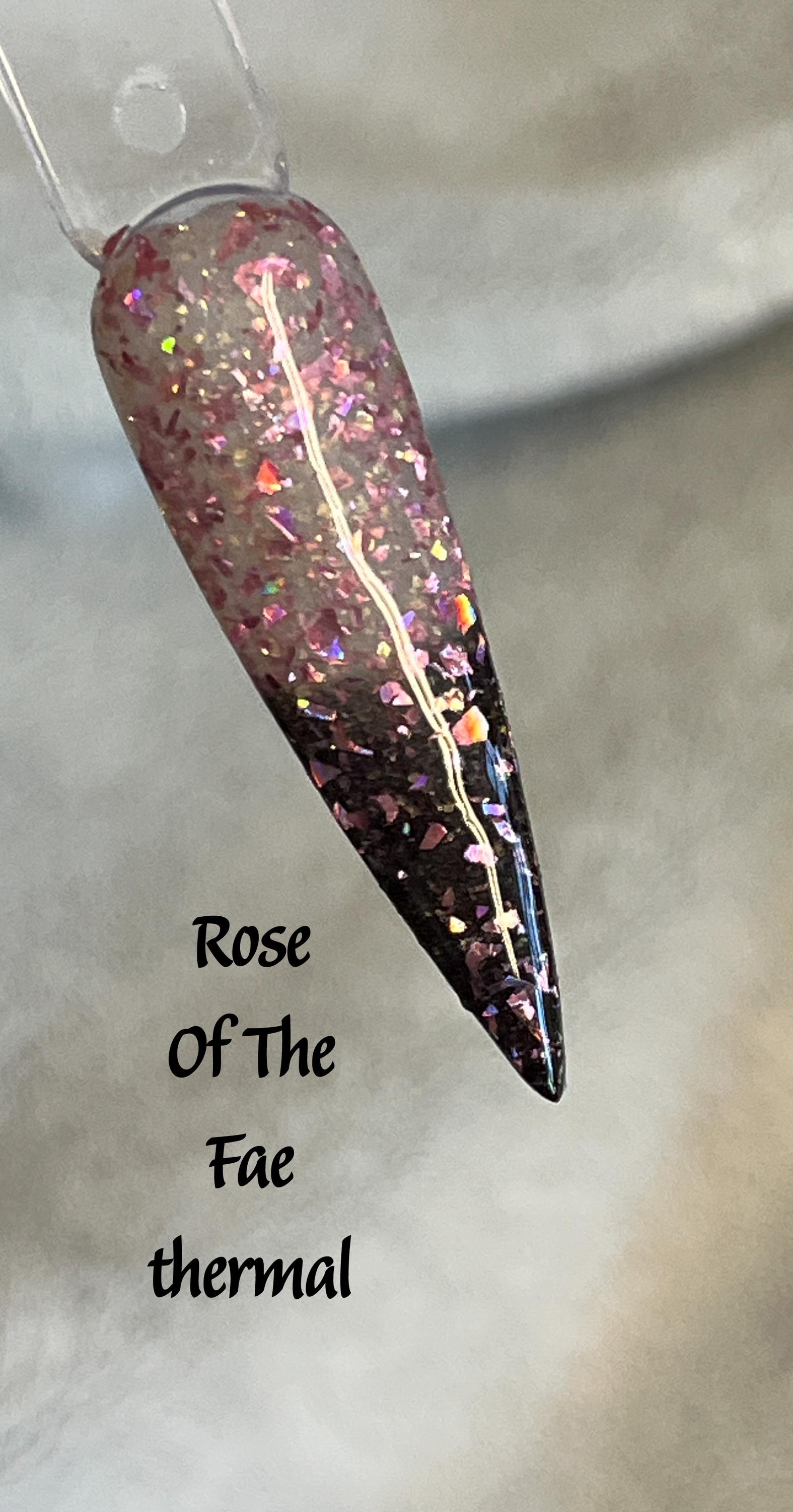 Rose Of The Fae is a thermal dip powder that is black when cold and sheer when warm. It has holo ros...