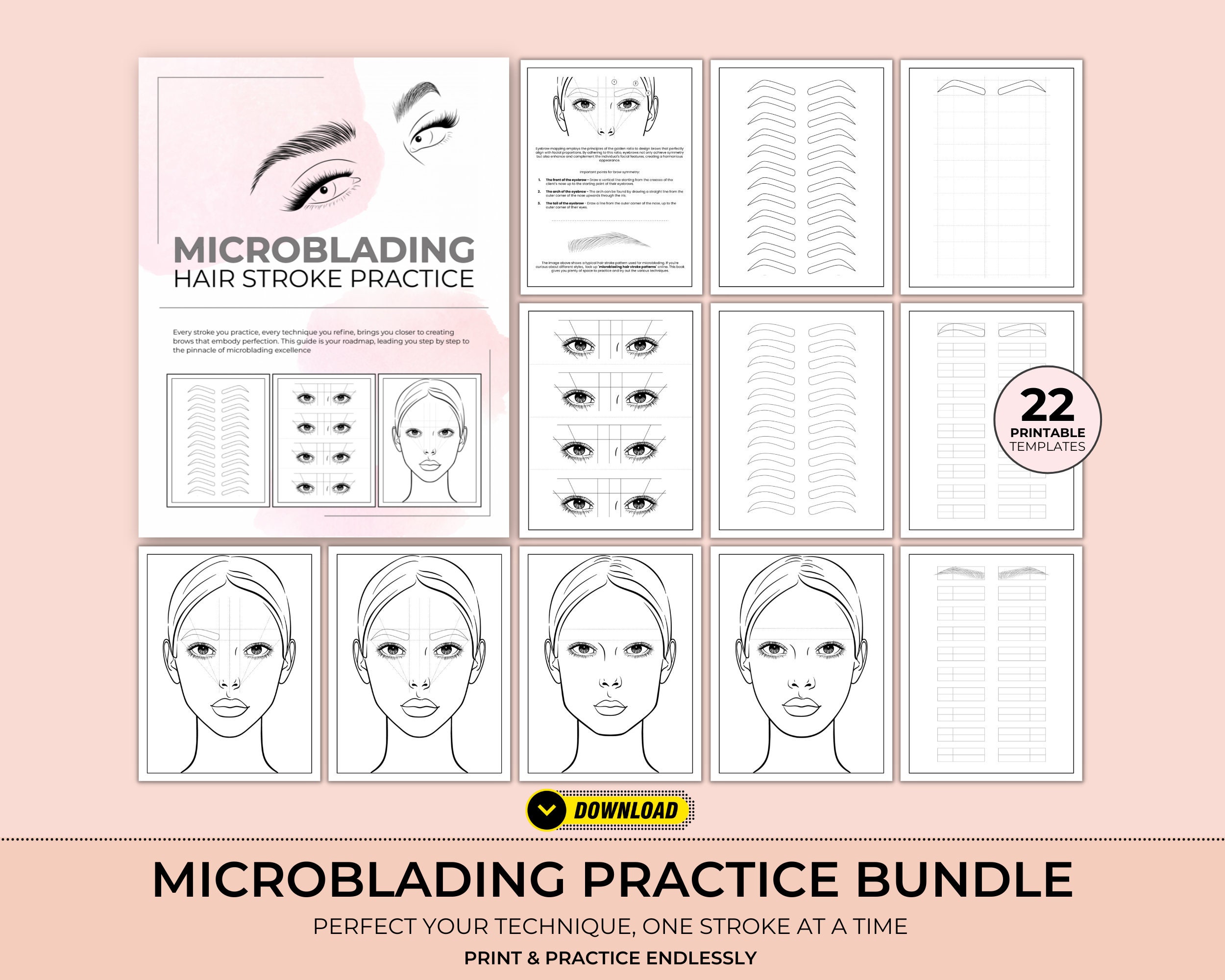Eyebrow Practice Sheets, Brow Mapping, Microblading Practice, Micro...