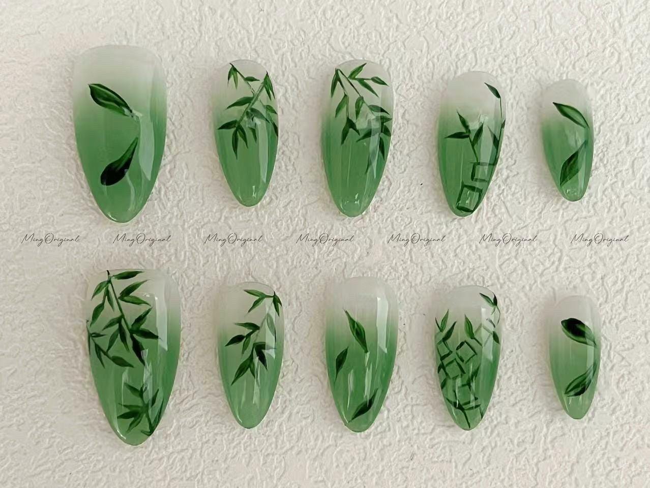 3D Snake Bamboo design Press On Nail|Ink painted Reusable Nail|Hot ...