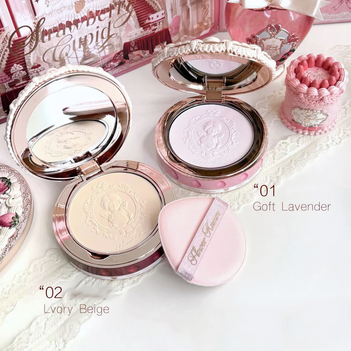 Flower Knows Compact Powder Matte Pressed Setting Powder Strawberry Cupid Collection Pressed Foundat...