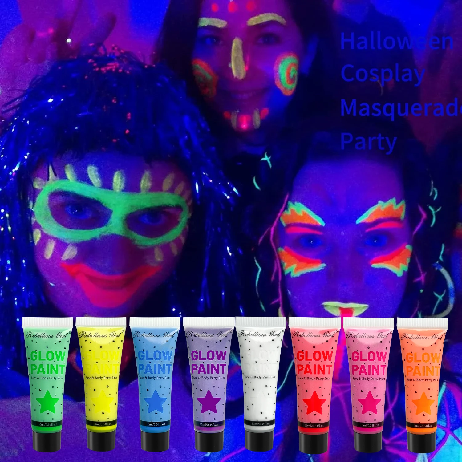 UV Glow Blacklight Face Body Paint 8 Color Glow in the Dark Neon Fa...