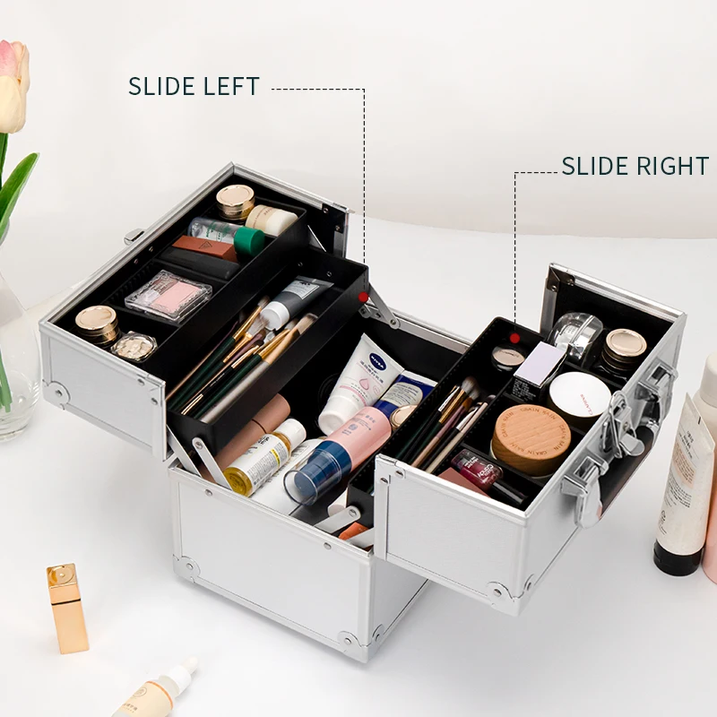 Aluminum Cosmetic Makeup Train Case Nails Polish Beauty Organizer Case Hairdressing Make Up Storage ...