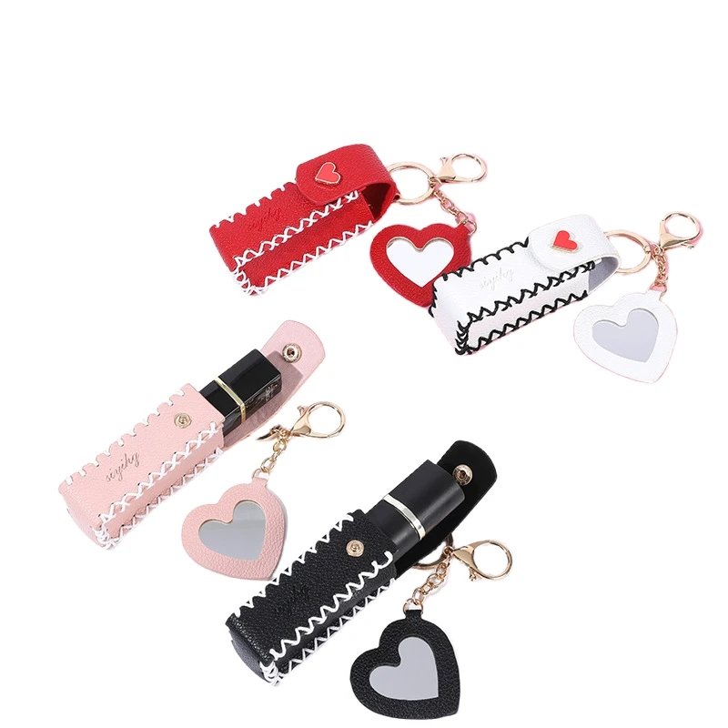 Lipstick Organizer Keychain with Mirror PU Leather Lipstick Cover K...