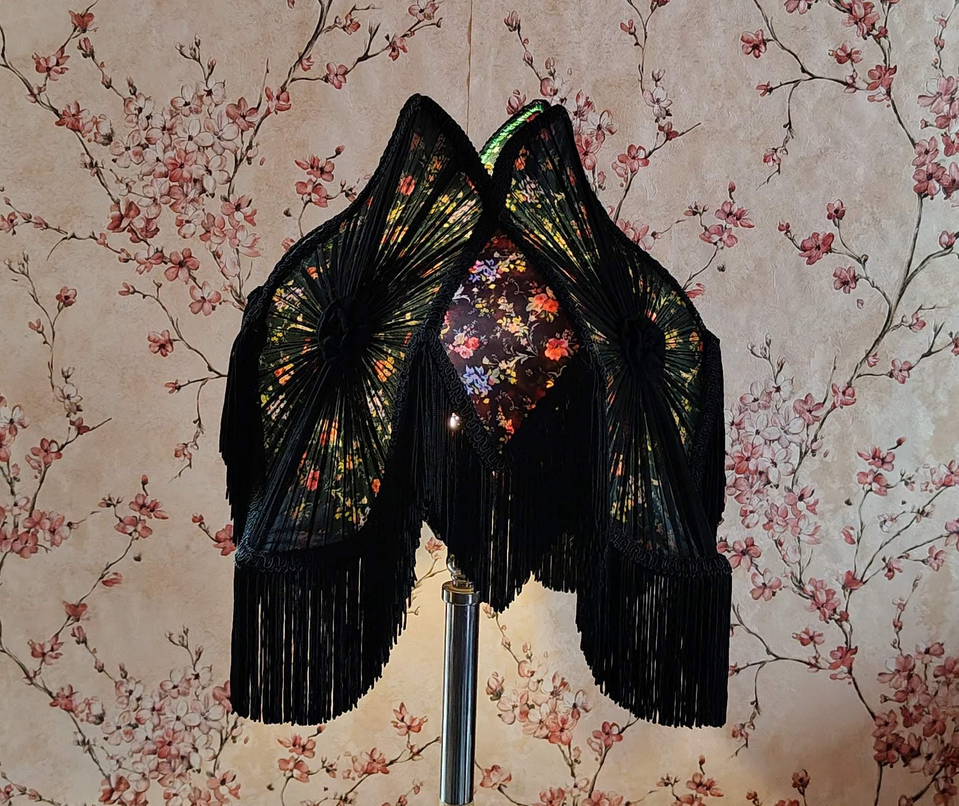 Lampshade Lotus Black Multi Print With Rayon Fringe. Our handmade lampshades bring a unique blend of...