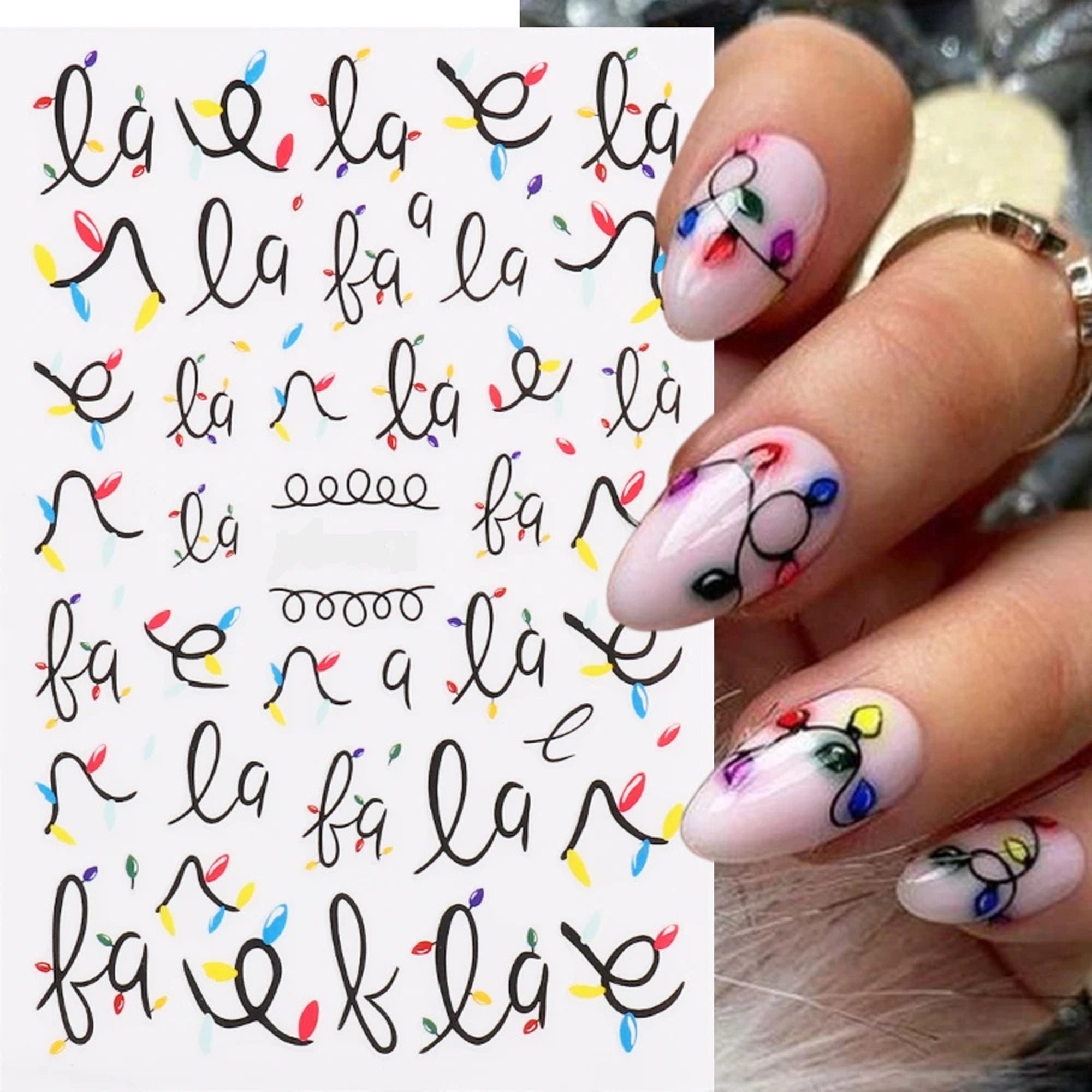 Nail Art Stickers Decals Christmas Lights Song La La La Deck the Ha...