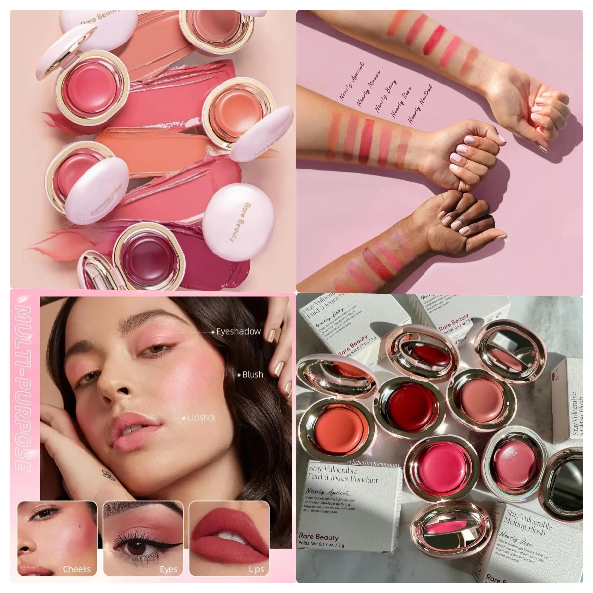 Rare Beauty Stay Vulnerable Melting Cream Blush Makeup Palette Matte & Pearlescent Texture Glitt...