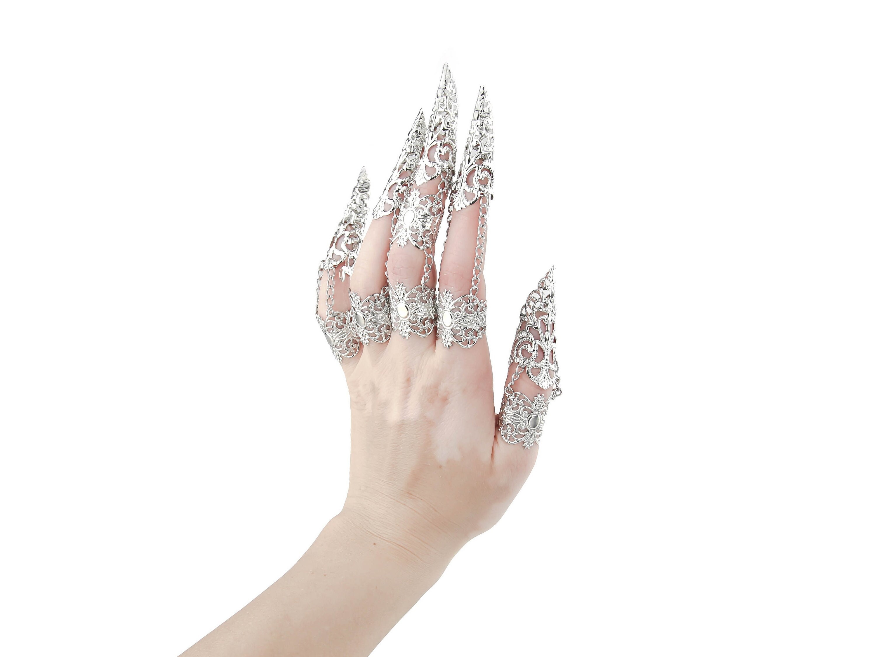 "FINGER CLAW RINGS \"SYLVA\" Filigree Gothic Nail Jewelry connected with chains. All ...