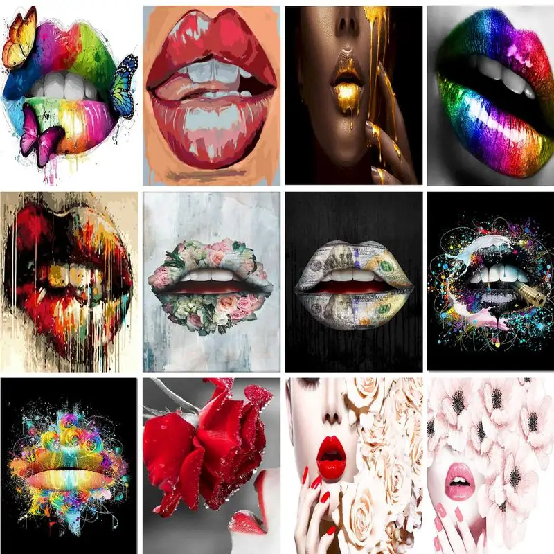 GATYZTORY Painting By Numbers On Canvas Colorful Lips DIY Paint By ...