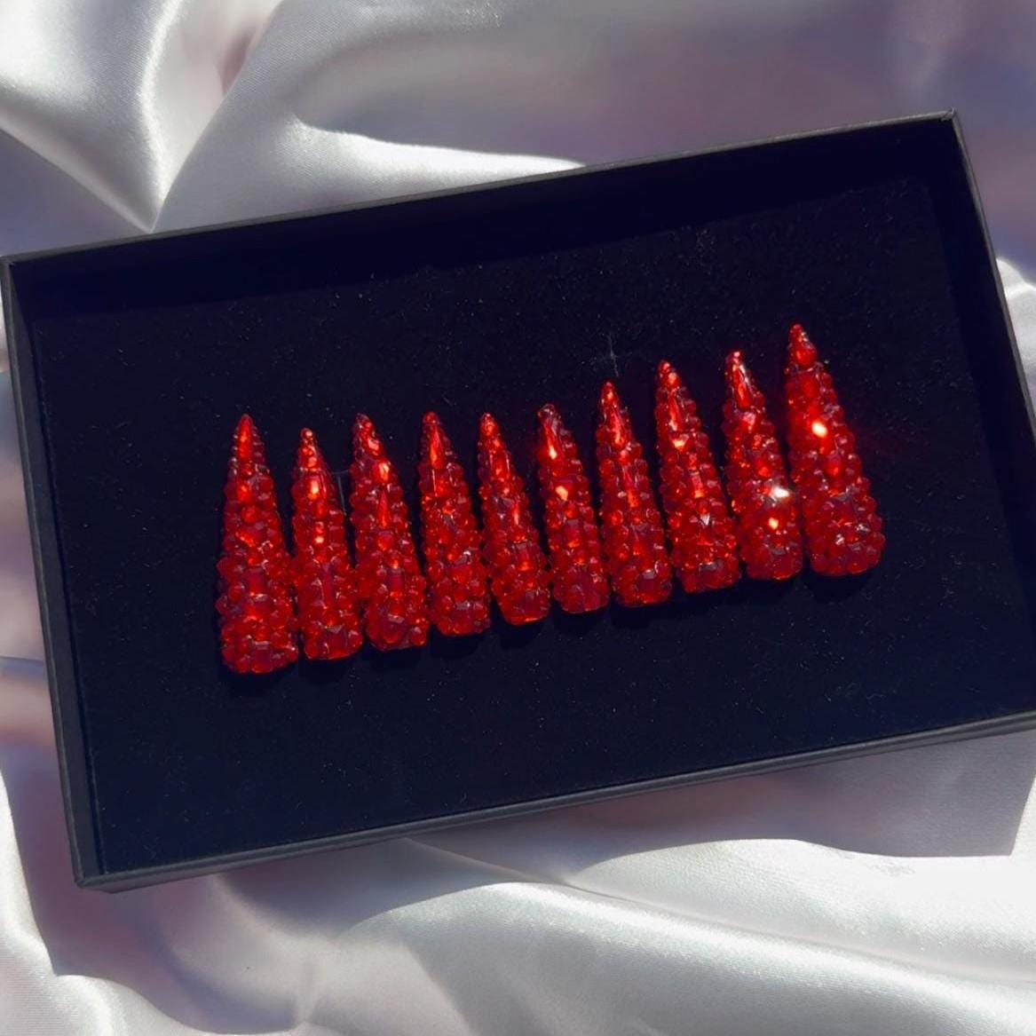 XL Red Stiletto Nails | Red Bling Stiletto Press On Nails | Long St...