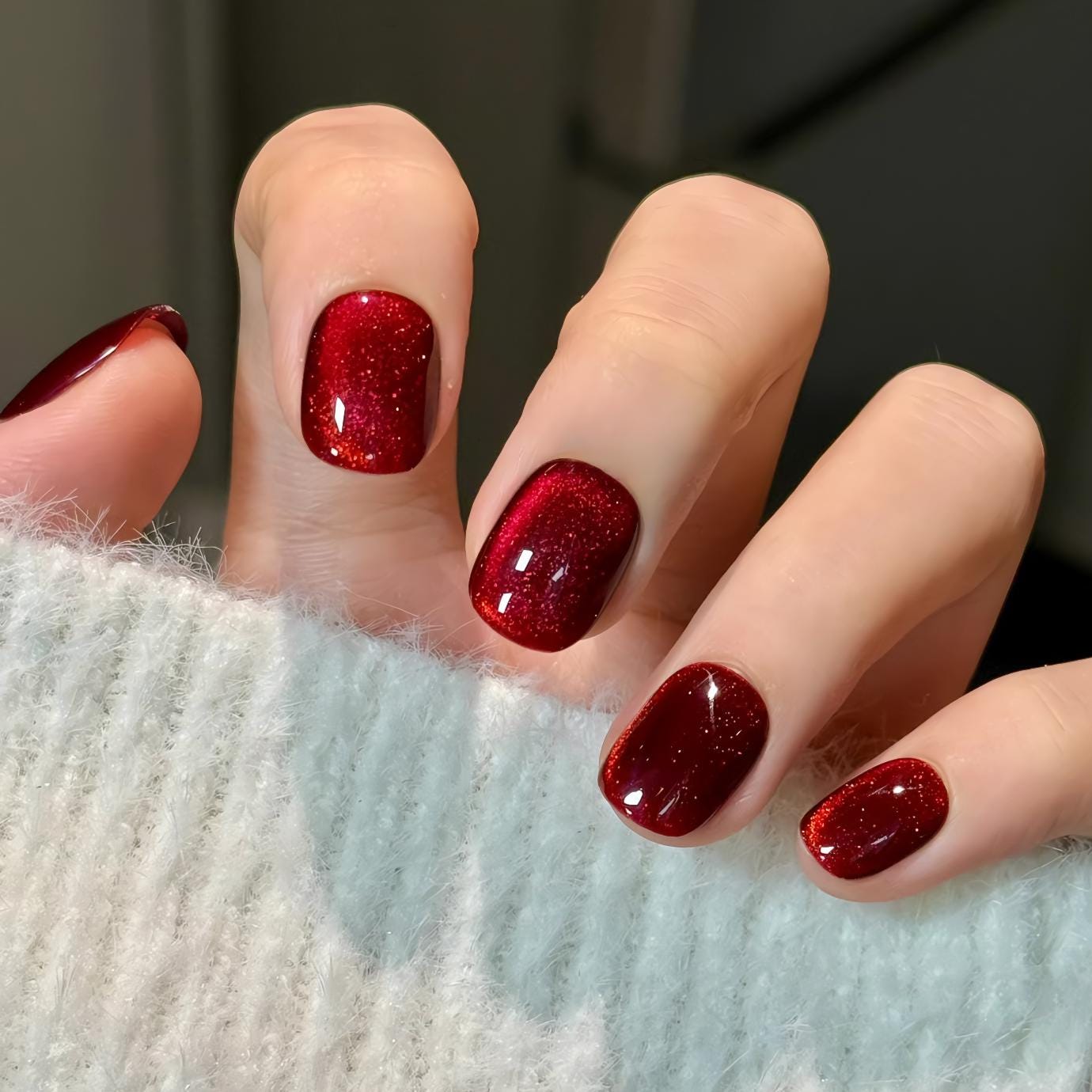 Handmade Red Mystery Cat Eye Press On Nails Aurora Nails Red Gemsto...