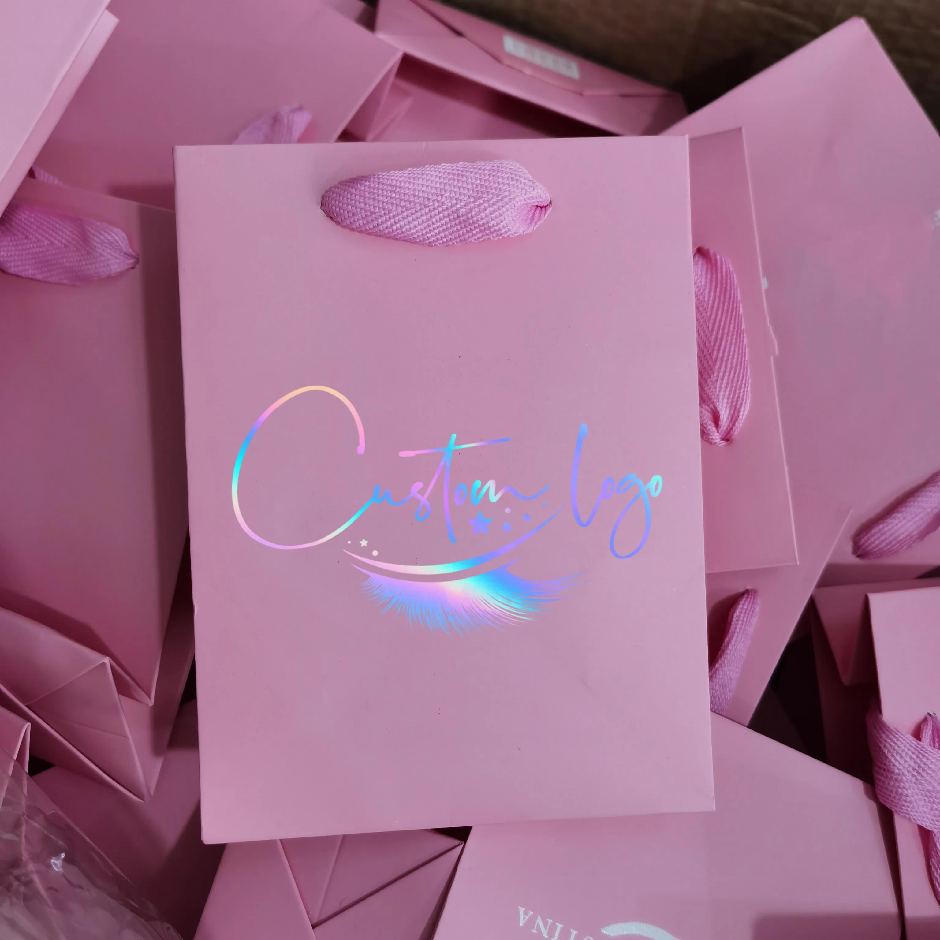 White pink Paper Lashpackaging Bags for Lashes Mini Handbag Lashes ...