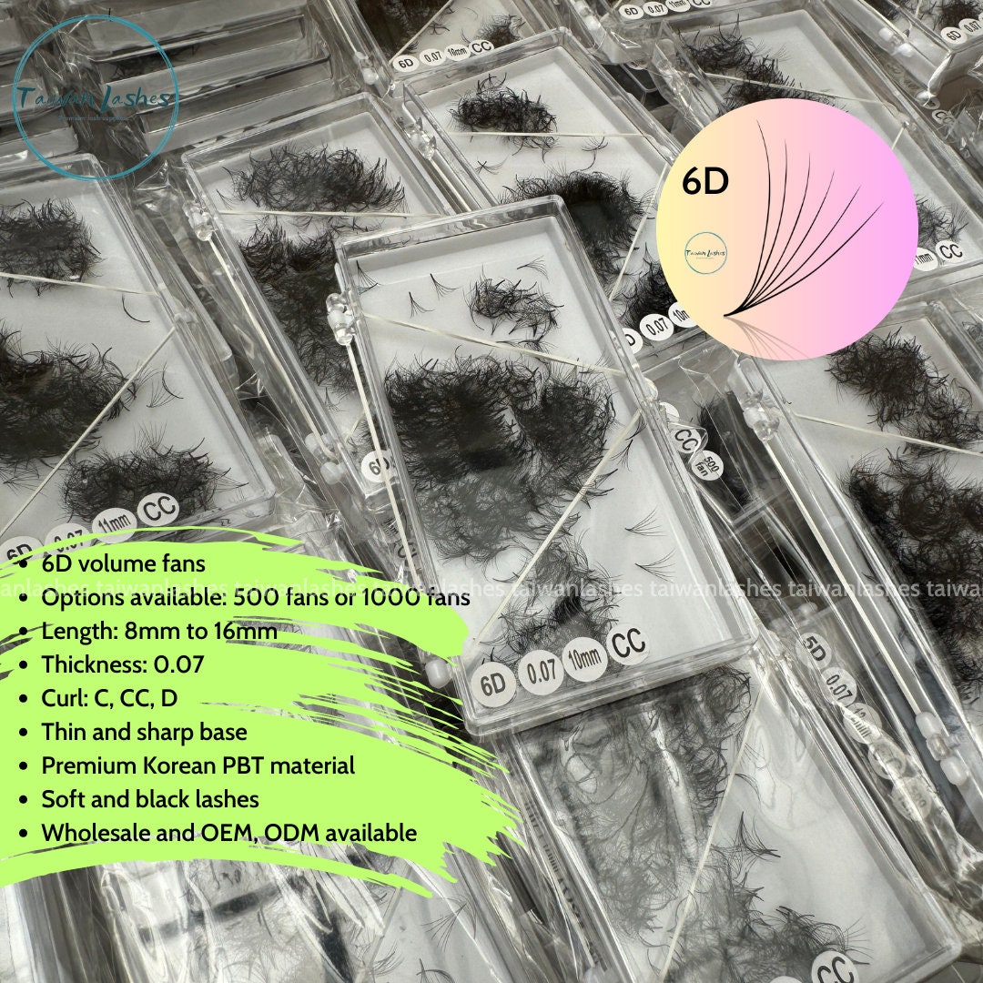 Cost-effective: TAIWAN LASHES 6D Premade Loose Fans come in packages of 500 fans/box or 1000 fans/bo...
