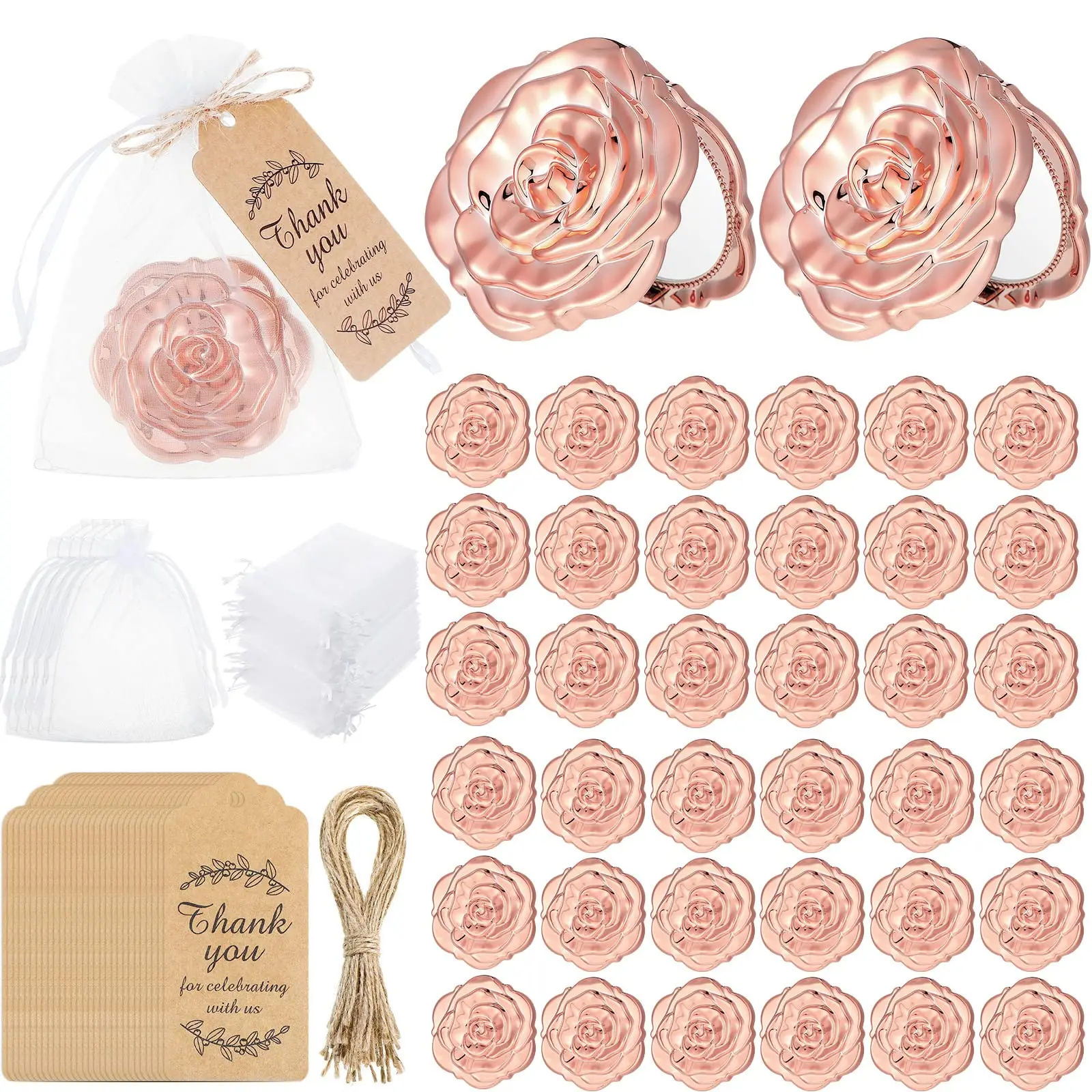 24-60PCS Rose Compact Mirrors Bulk Handheld Mirror with Handle Princess Portable Makeup Mirror for G...