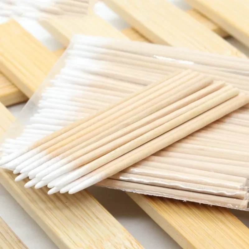 100 Pcs Wood Sticks Cosmetic Cotton Swab Cotton Buds Tip Wood Cotto...