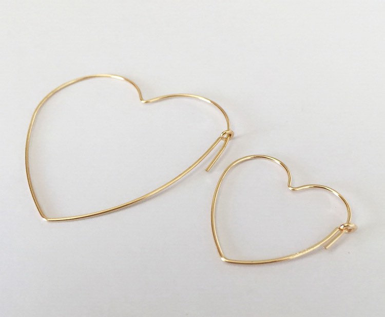 2 Pcs 14K Gold Filled Wire Heart Hoop, Heart Shape Hoops, Wire Hoop...
