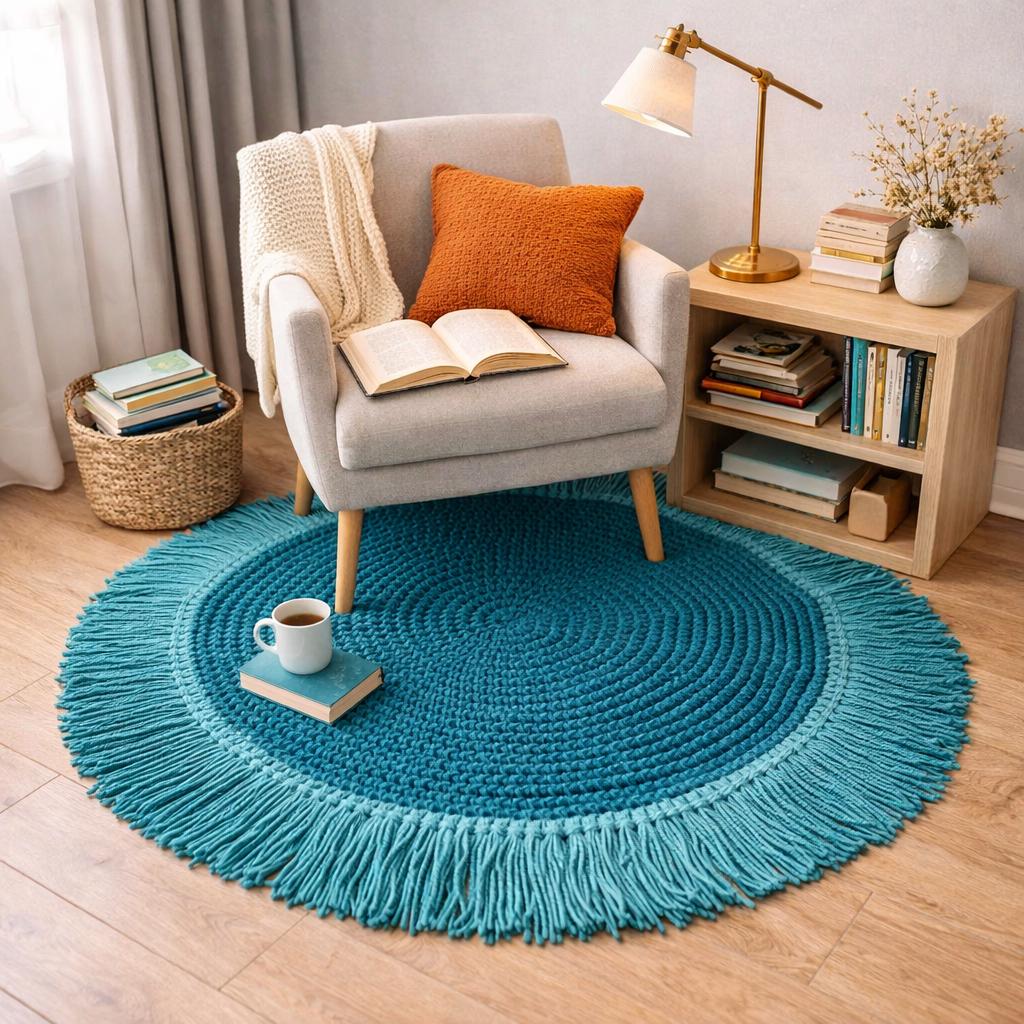 Round Fringe Rug Crochet Pattern PDF - Stylish Boho Crochet Rug Design Create a cozy and stylish hom...