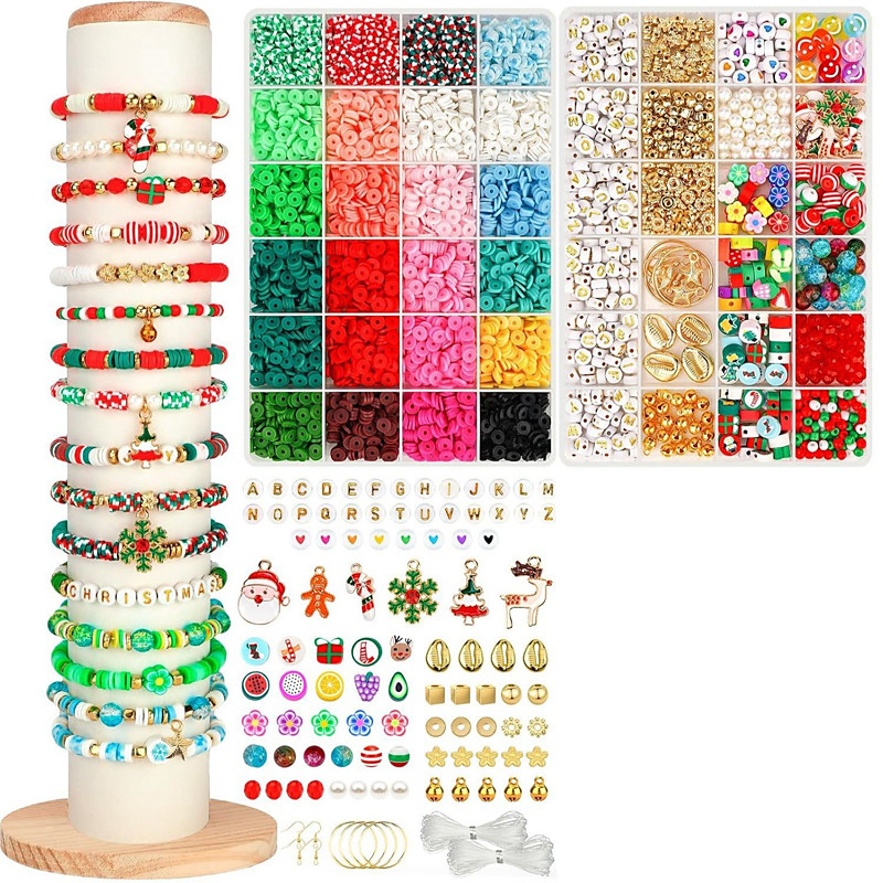 Christmas Beads for Jewelry Making Charms Clay Beads for Bracelet N...