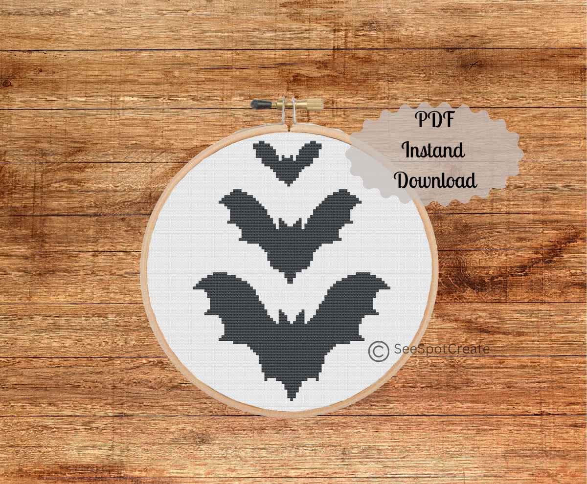 Bats Cross Stitch Pattern Halloween embroidery pattern digital down...