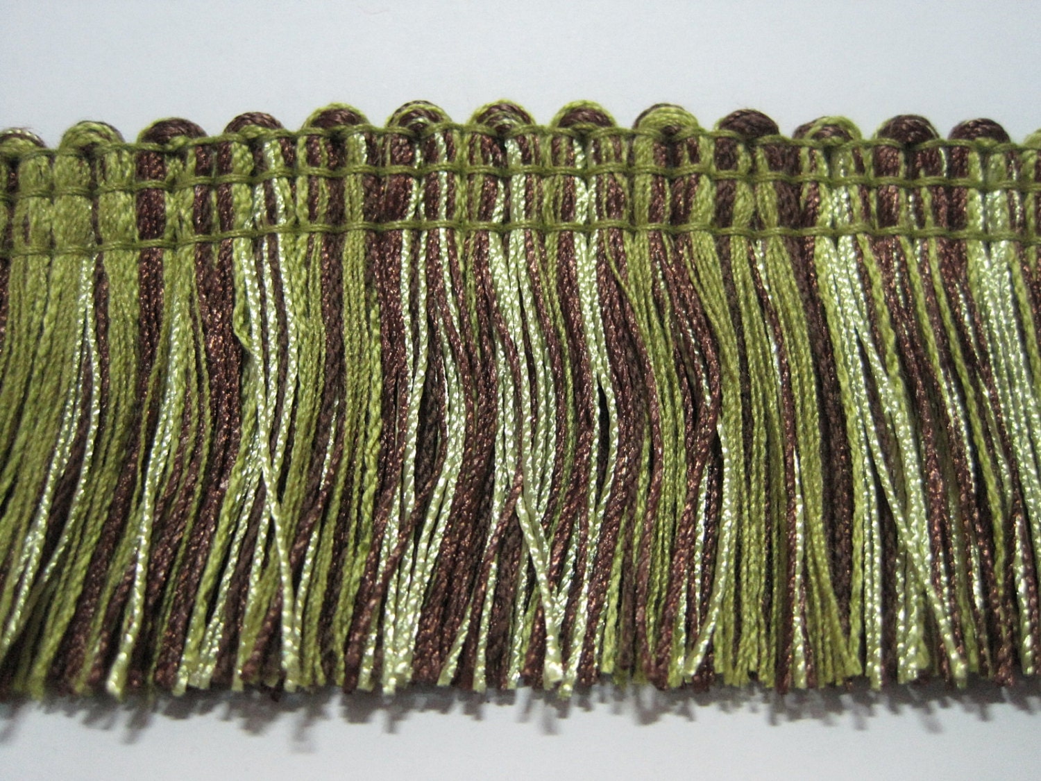 5 Yards Olive Drab Green-Dark Brown Brush Fringe Trim, Tassel Trim,...