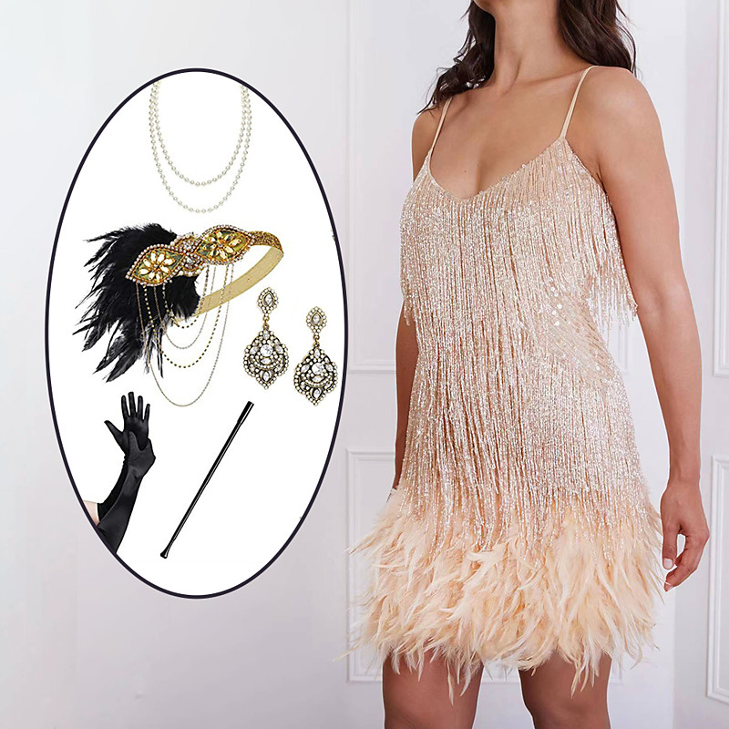 Roaring 20s 1920s Mini Flapper Dress Dress Flapper Headband Sleevel...