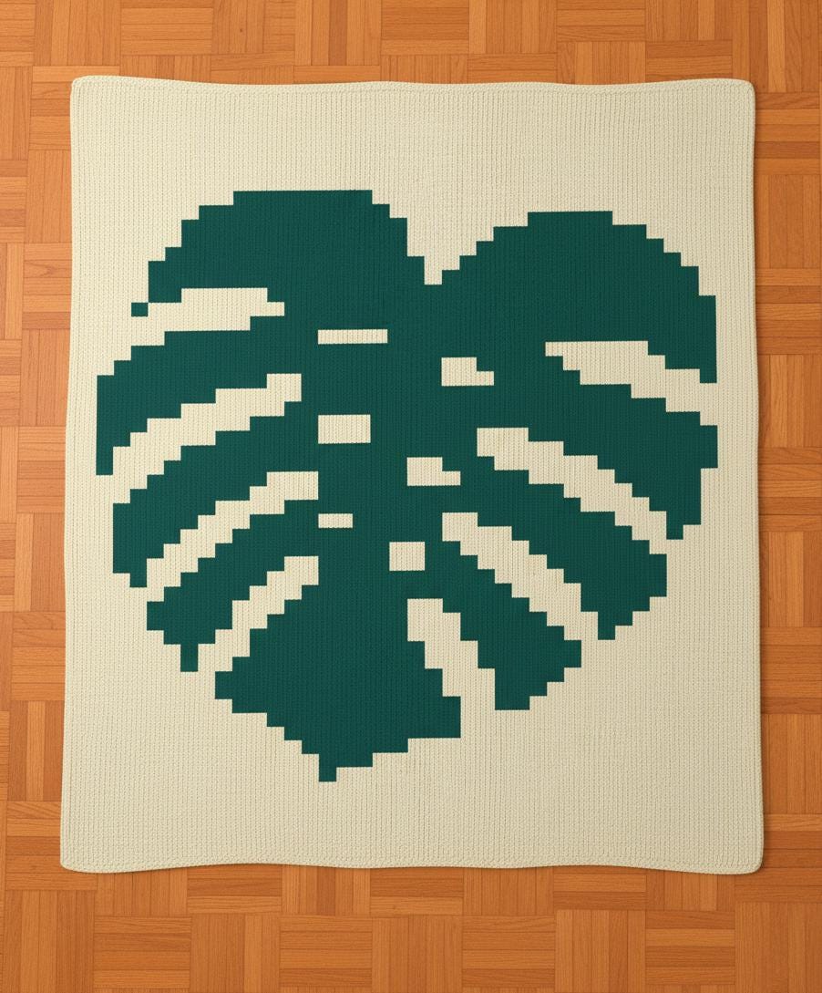 Monstera Leaf Finger Knitting Pattern. Chunky Knit Blanket Pattern....