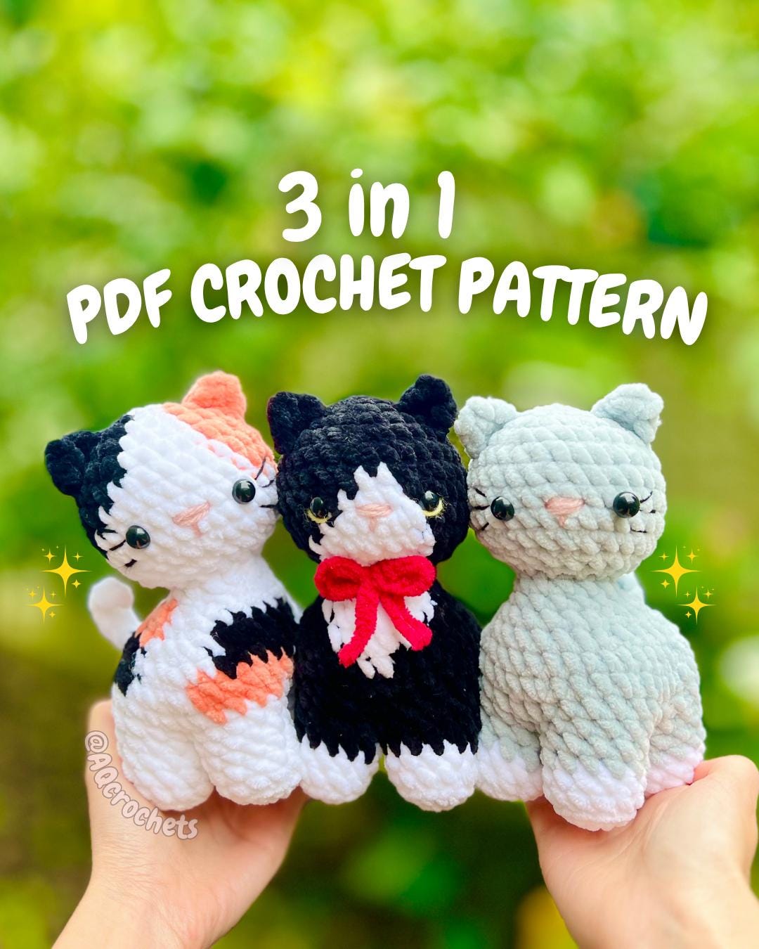 Standing Cats 3 in 1 Crochet Pattern (cat crochet pattern, amigurum...
