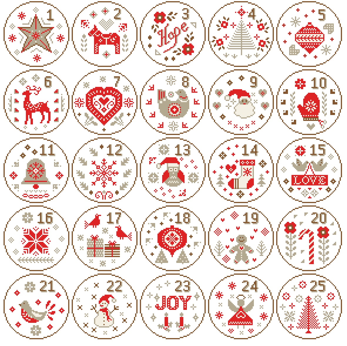 25 Christmas Cross Stitch Mini Ornaments Pattern Set , Tiny Cross S...