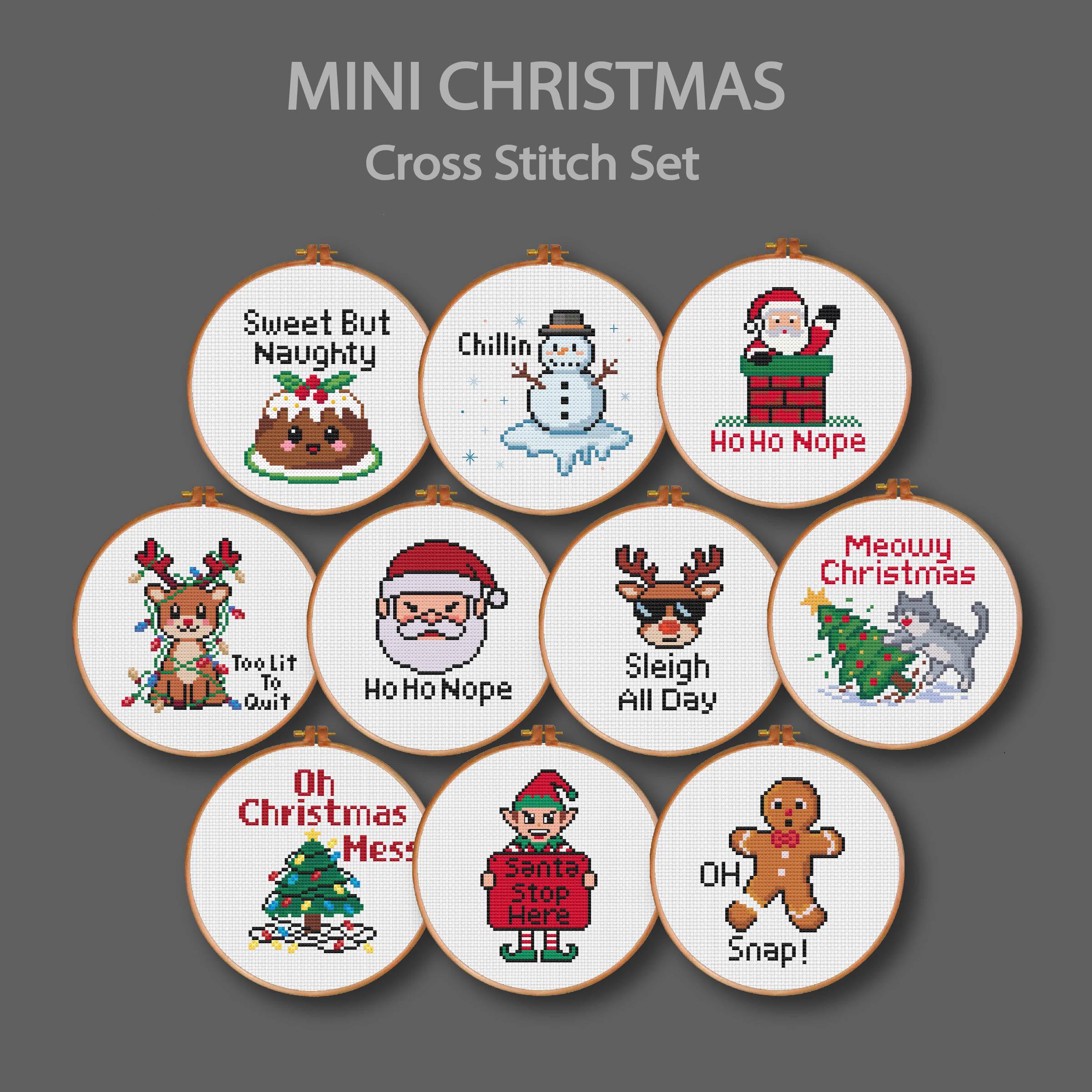 Mini Christmas Cross Stitch Set ,Mini Christmas Ornaments, Funny Ch...