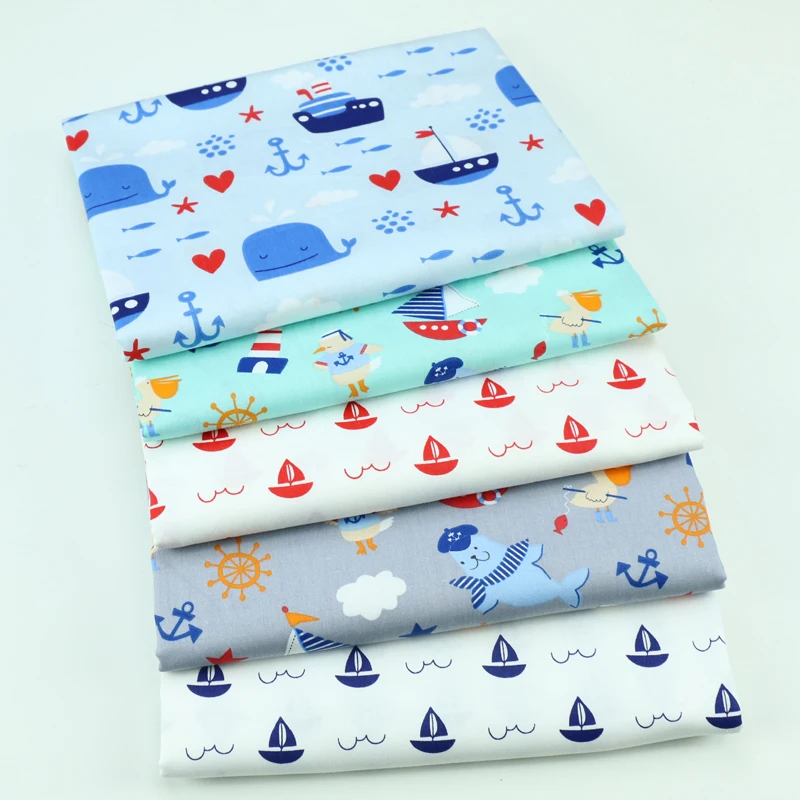 Handmade Cotton Fabric for DIY Patchwork, Ocean, Ship Series, Printed Cloth, Sewing Craft, Quilting,...