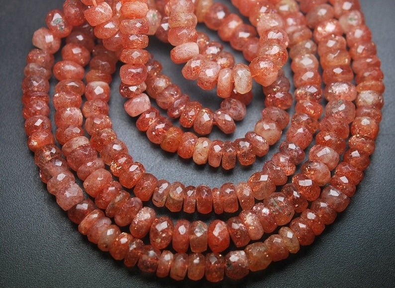 Natural Sunstone Faceted Rondelle Beads 7mm-8mm,Faceted Rondelle Beads,Rare Oregon Sunstone Faceted ...
