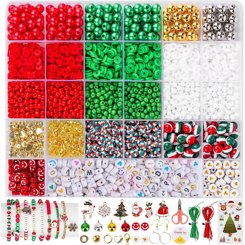 Christmas Beads for Jewelry Making Charms Clay Beads for Bracelet N...