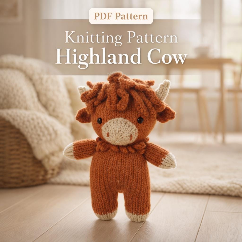 Highland Cow Knitting Pattern PDF, Cow Plushie Pattern, Toy Knittin...