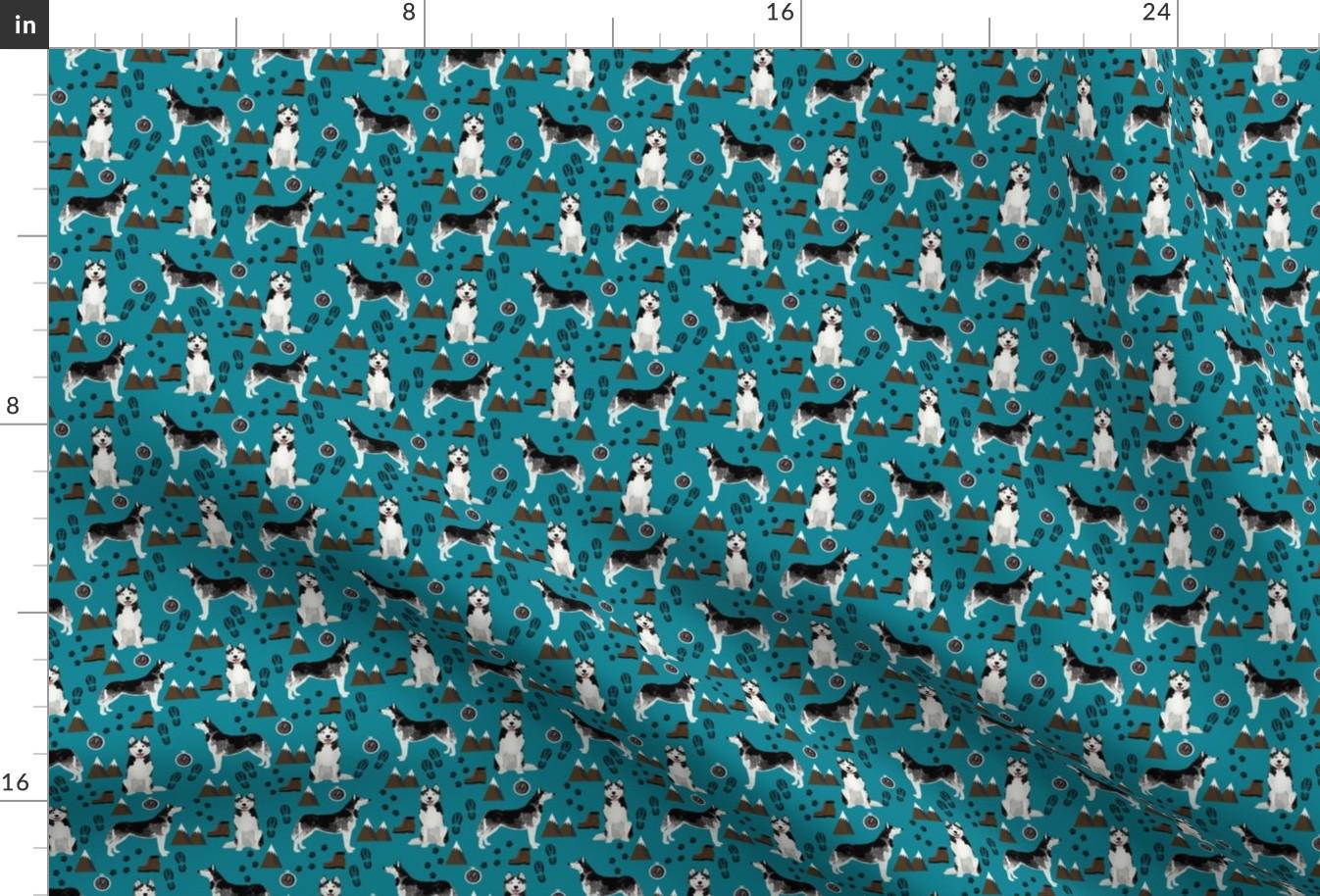 Husky Fabric - Husky Fabric Siberian Husky Dog Mountain Compass Paw...